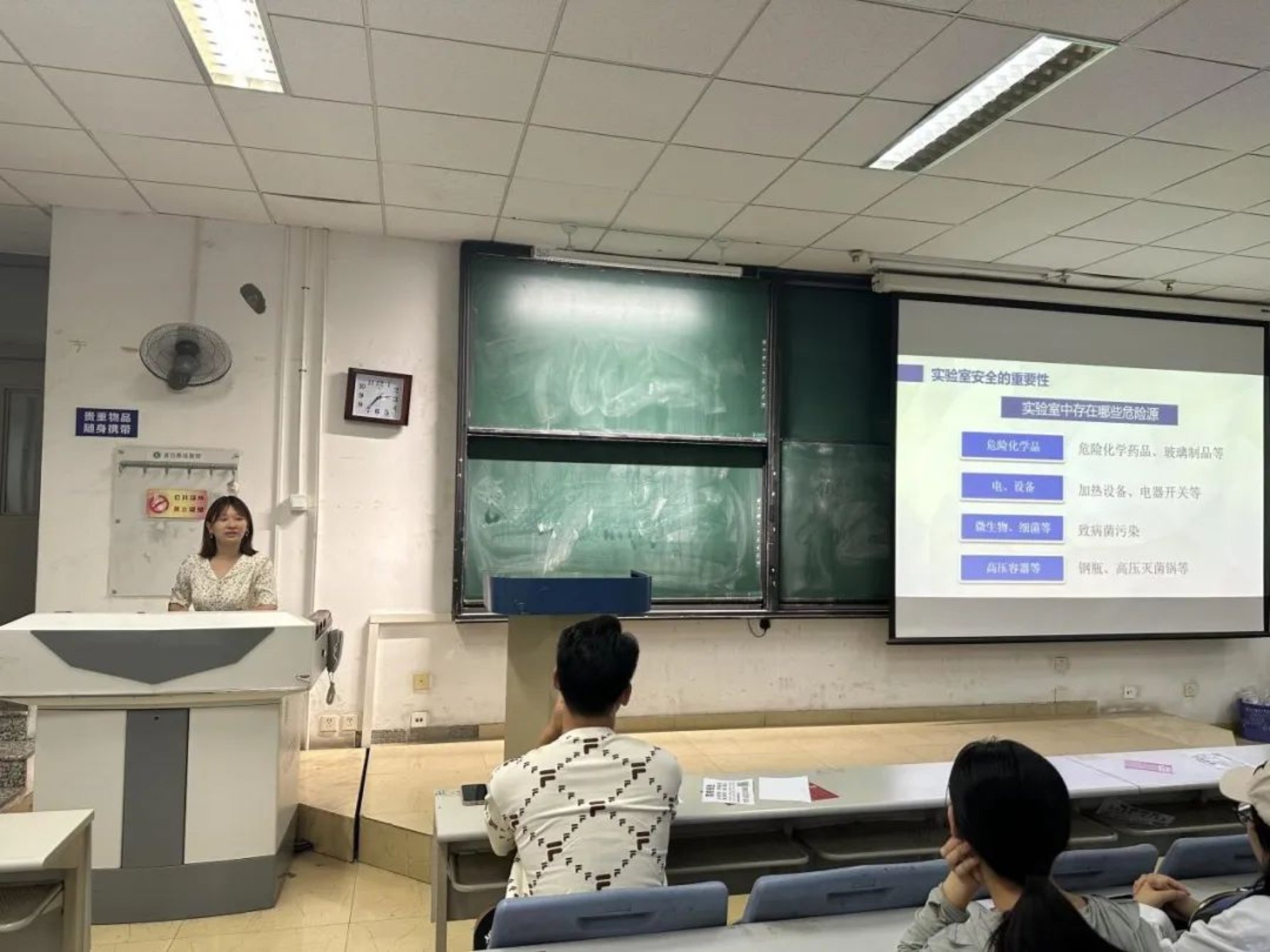 为深入贯彻落实党中央、国务院关于安全生产工作的要求,加强实验室安全工作,落实实验室安全管理制度,严防各类事故发生;持续加强研究生新生各类安全教育,9月8日,海洋与环境学院于滨海中校区9-2阶组织召开实验室安全教育专题讲座,本次安全讲座由学院实验中心主任马增钰老师主讲,研究生辅导员李婷申老师,2023级全体研究生新生参加。