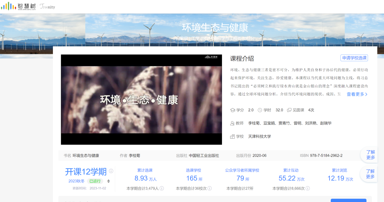课程链接:http://www.zhihuishu.com/portals_h5/2clearning.html#/courseSearch/?keyword=%25E7%258E%25AF%25E5%25A2%2583%25E7%2594%259F%25E6%2580%2581%25E4%25B8%258E%25E5%2581%25A5%25E5%25BA%25B7